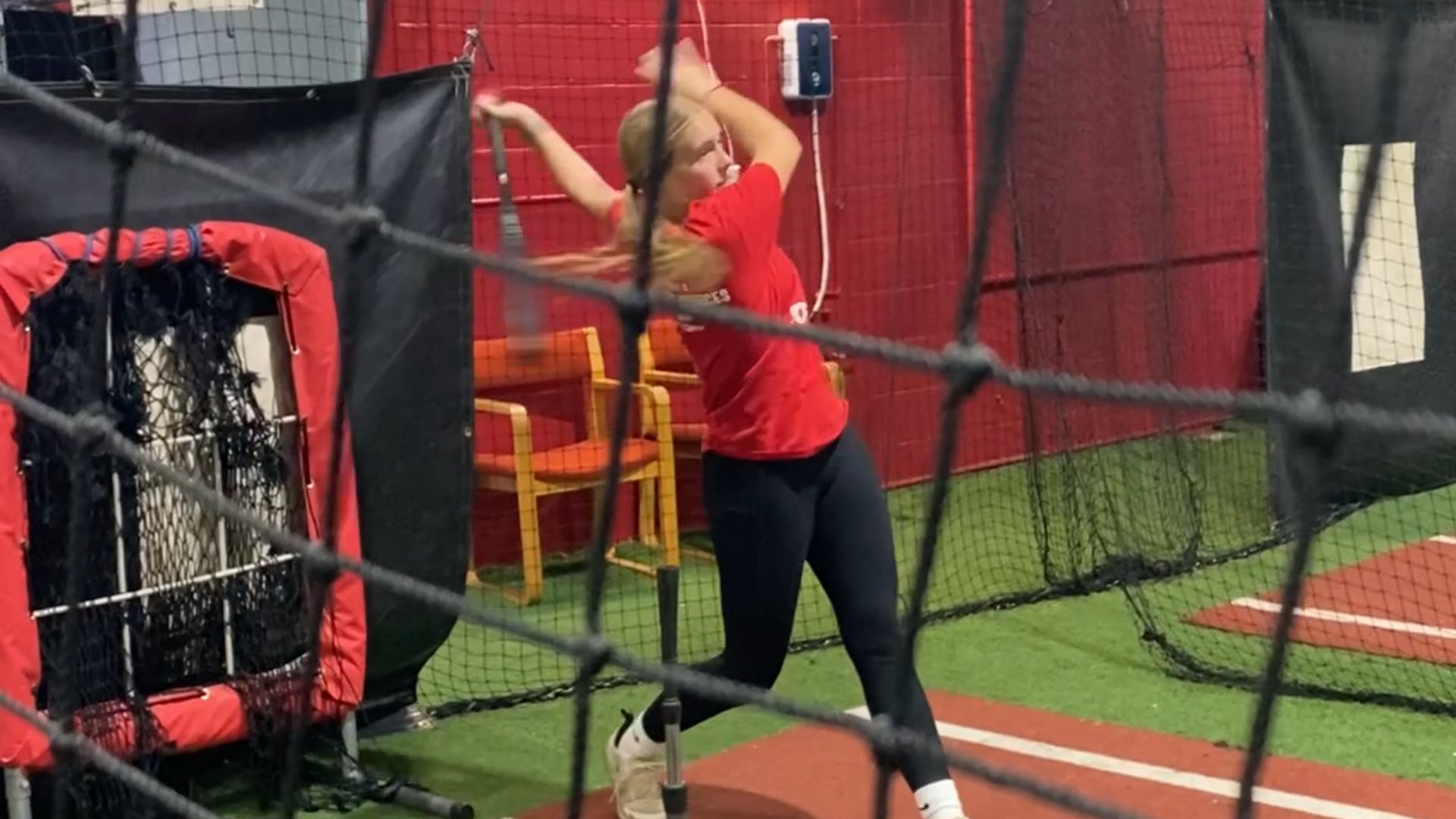 Cage hitting off tee