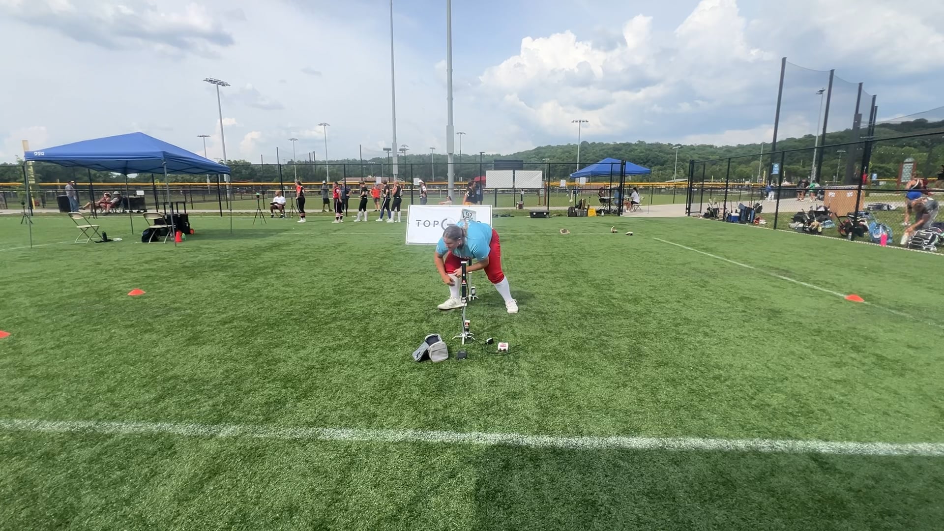 2027 Gracie Riccio, 1B/RF ? Shawnee, KS, ? Wed, 06/11/25, ⏰ 04:13 PM, Top Gun Events Metrics > Throwing > Velocity